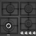 Поверхность: варочная панель • Тип поверхности: газовая • Рабочая поверхность: эмаль • Число конфорок: 4 • Установка: независимая • Газовые конфорки: всего - 4 (1 конфорка "Тройная корона") • Газ-контроль конфорок: есть • Тип управления: механическое • Переключатели: поворотные • Электроподжиг: есть, автоматический • Размеры: 590x510x55 мм • Размер ниши для встраивания: 560x480 мм • Цвет: панель - черный