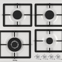 Поверхность: варочная панель • Тип поверхности: газовая • Рабочая поверхность: эмаль • Число конфорок: 4 • Установка: независимая • Газовые конфорки: всего - 4 (1 конфорка "Тройная корона") • Газ-контроль конфорок: есть • Тип управления: механическое • Переключатели: поворотные • Электроподжиг: есть, автоматический • Размеры: 590x510x55 мм • Размер ниши для встраивания: 560x480 мм • Цвет: панель - белый
